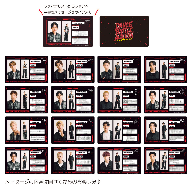 - ファイナリストによる最終審査と、新メンバー発表の一部は月額見放題サービスで配信の「ダンバトオーディション -DANCE BATTLE×AUDITION-」《配信版12,13話》でもご覧いただけます。